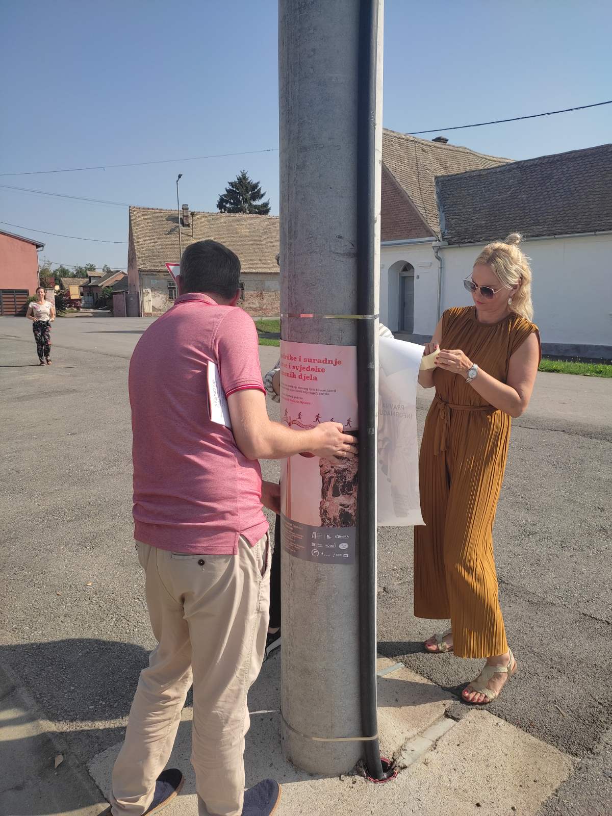 U okviru karavane smo lijepili plakate i dijelili letke te održali sastanak u gradu Đakovu kako bismo prezentirali rad Udruge za podršku žrtvama i svjedocima te aktivnosti i usluge koje imamo za građane Osječko-baranjske županije.
