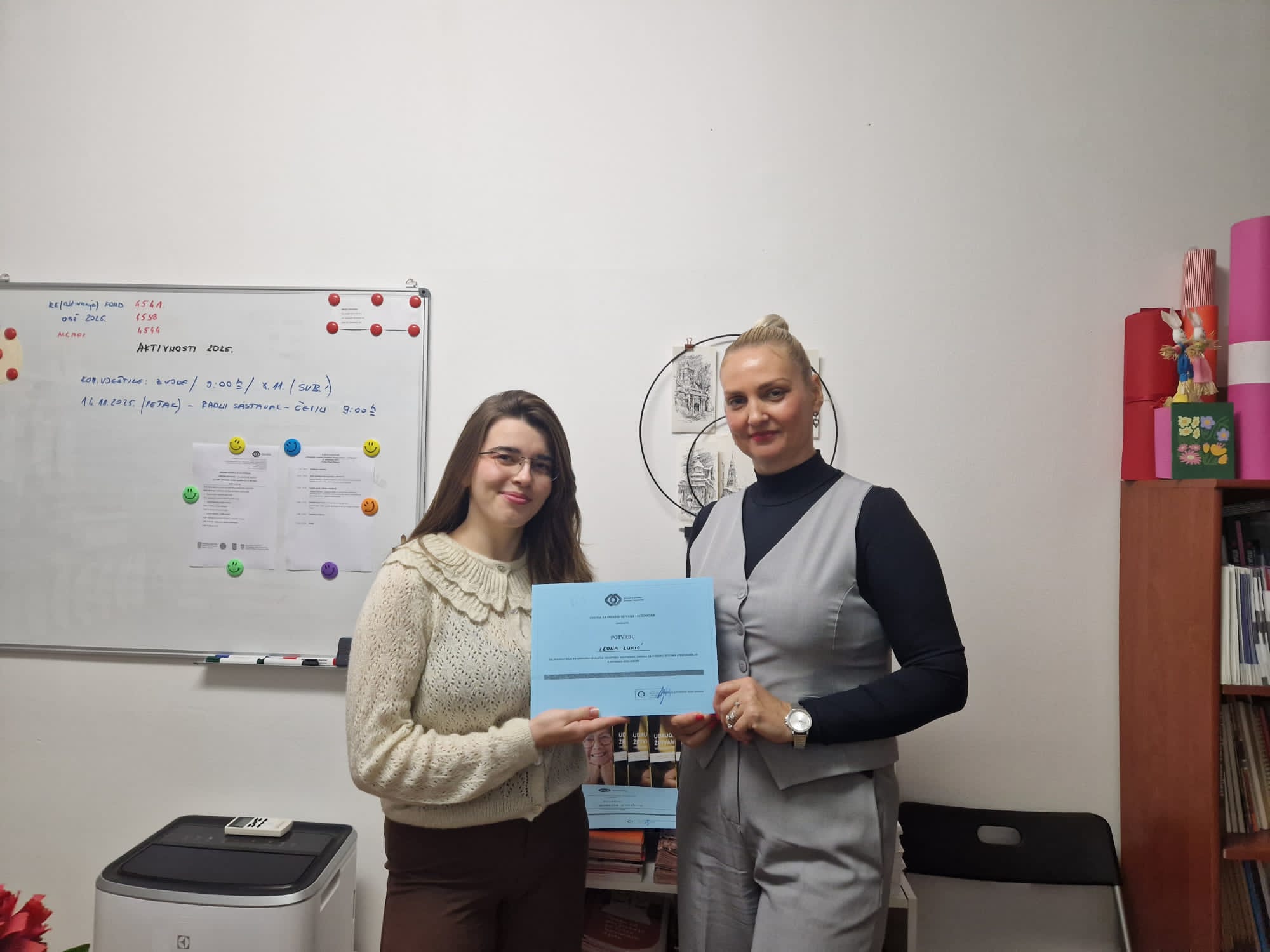 Komunikacijske vještine je vodio naš vanjski suradnik Zvonimir Marinović. Nakon edukacije koordinatorica volontera i voditeljica Ureda Osijek Marjana Skoko podijelila je potvrde o sudjelovanju te smo potpisali nove ugovore o volontiranju.