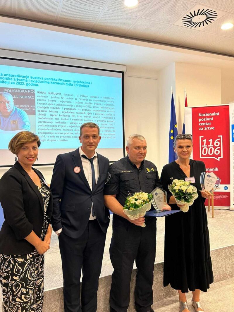 Uvjereni da se primjeri pružanja podrške žrtvama i svjedocima kaznenih djela i prekršaja nasilja u obitelji prepoznaju i zaslužuju priznanje, pozivamo Vas, ovim putem, da nam dostavite nominacije za dodjelu Priznanja radi unapređivanja sustava podrške žrtvama i svjedocima kaznenih djela i prekršaja nasilja u obitelji i pružanja podrške žrtvama i svjedocima. Udruga za podršku žrtvama i svjedocima u rujnu 2023. godine uručila je Priznanja za unapređivanje sustava podrške žrtvama i svjedocima u 2022. godini, Fani Bugarin Šoljan, programskoj koordinatorici za ljudska prava iz Centra za građanske inicijative Poreč i Goranu Matijeviću, policijskom službeniku za prevenciju PU požeško slavonske, a u rujnu 2022. godine smo Priznanje za 2021. godinu dodjeli Anamariji Drožđan Kranjčec, koordinatorici Mreže podrške i suradnje za žrtve i svjedoke, te Nikici Hamer Vidmar iz Ministarstva pravosuđa i uprave RH, zajedno s Anitom Matijević iz Ministarstva unutarnjih poslova RH.