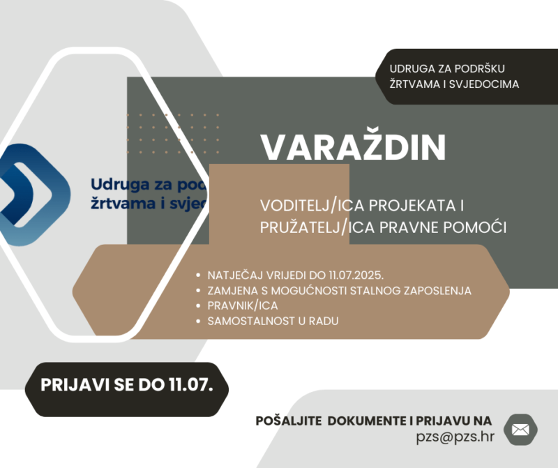 Udruga za podršku žrtvama i svjedocima zapošljava. Ako se pronalazite u vođenju projekata i pružanju pravne pomoći javite se na naš natječaj.