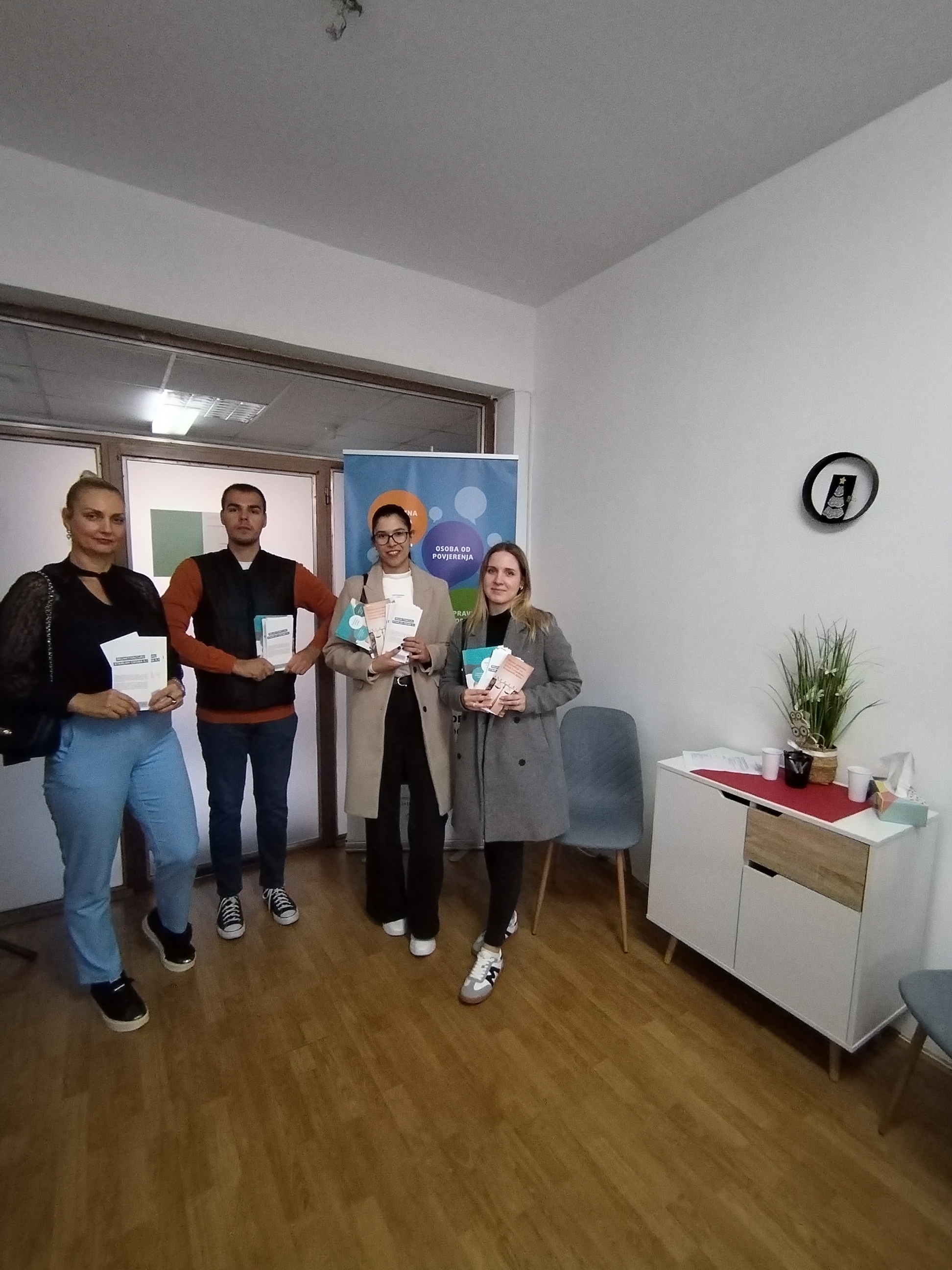 16.listopada 2023.godine u uredu Osijek  voditeljica projekta Marijana Skoko, održala je sastanak s vanjskim izvoditeljima aktivnosti na projektu kako bi dogovorili izvođenje zadanih edukacija i radionica koje su sastavni dio aktivnosti provedbe projekta. Na sastanku su nazočili Dejan Marčetić, Silvija Dološić Groznica i Melita Bošnjak sa volonterkom Ljubinkom Vuletić Vuković.