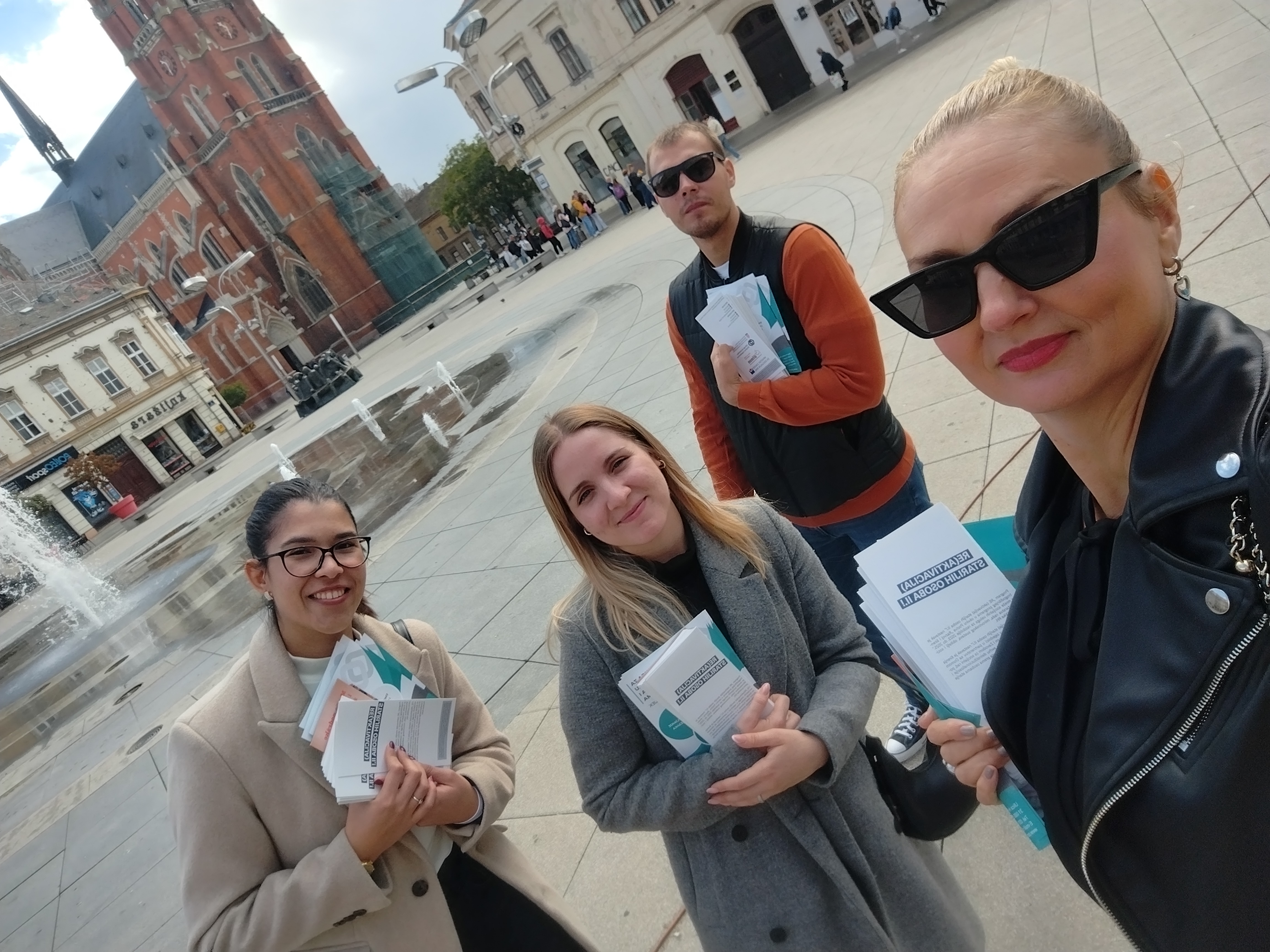 Povodom Međunarodnog dana starijih osoba održali smo javnu akciju u Osijeku. Voditeljica projekta i Ureda Osijek Marjana Skoko i volonteri Marija Tikvić, Nikolina Jurić  i Vito Krolo dijelili su letke i ostale promotivne materijale kako bi građane podsjetili na važnost obilježavanja dana posvećenoga starijim osobama koji su važan čimbenik našega društva te kojima je pomoć potrebna.Obišli smo glavne trgove grada te razgovarali s građanima kako bi podigli razinu informiranosti o uslugama koje pružamo u okviru “RE(aktivacija) starijih osoba II!” financiranog sredstvima Ministarstva rada, mirovinskog sustava, obitelji i socijalne politike Republike Hrvatske.