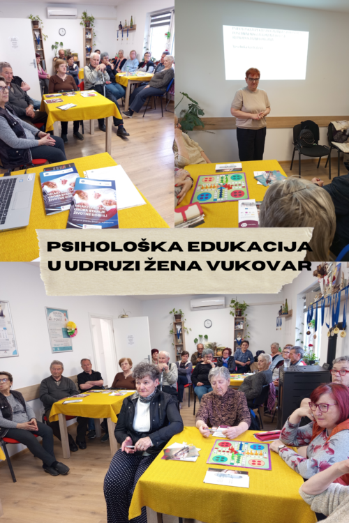 19. ožujka 2026.godine u okviru projekta održali smo drugu psihološku edukaciju naziva “Psihološki aspekti suočavanja s bolestima i dijagnozom” za osobe starije životne dobi u dnevnom boravku za starije osobe u Tenji u suradnji sa Ženskom udrugom Izvor uz Tenja.