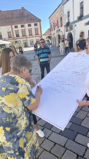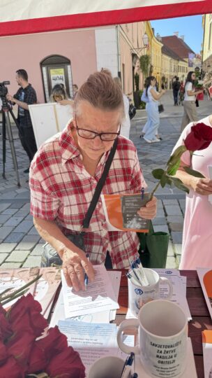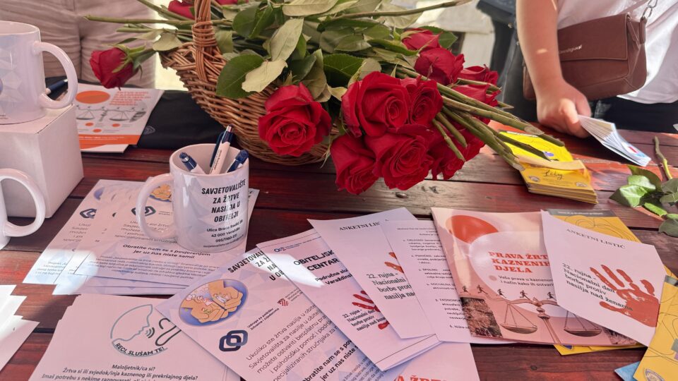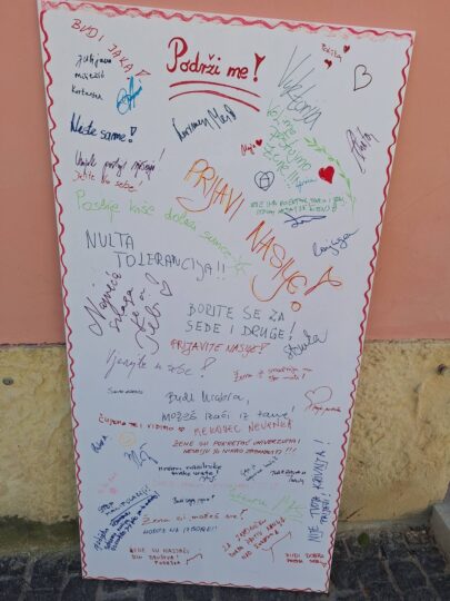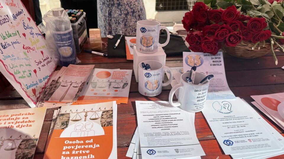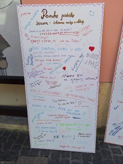 Građanima su podijeljeni promotivni materijali (platnene vrećice, bočice za vodu, šalice, kemijske olovke) i ruže. Građani su mogli pružiti podršku žrtvama nasilja pisanjem poruka podrške.